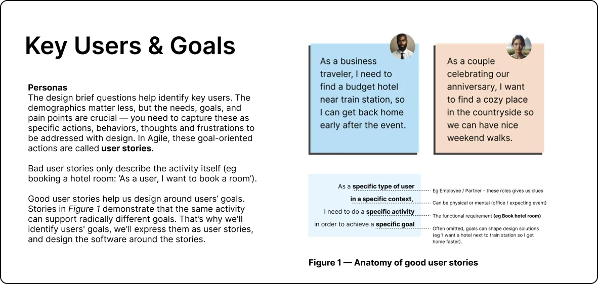 Establishes meaningful user groups and goal-driven personas to ensure requirements are grounded in real usage, not assumptions.